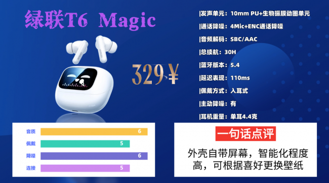 六、绿 联T 6 Magic蓝牙耳机