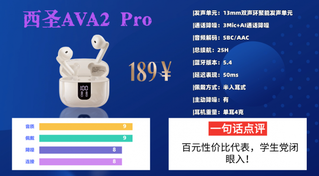 一、学生党性价比必入的西圣AVA2 Pro蓝牙耳机
