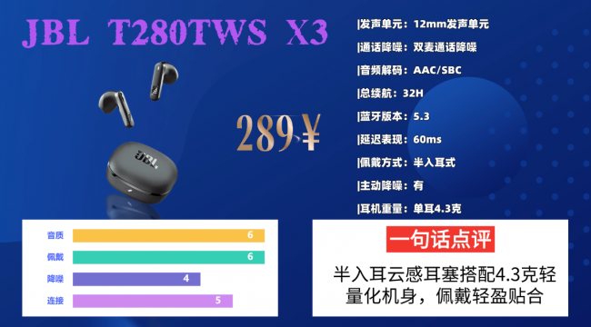 四、J BL T 280TWS X3蓝牙耳机